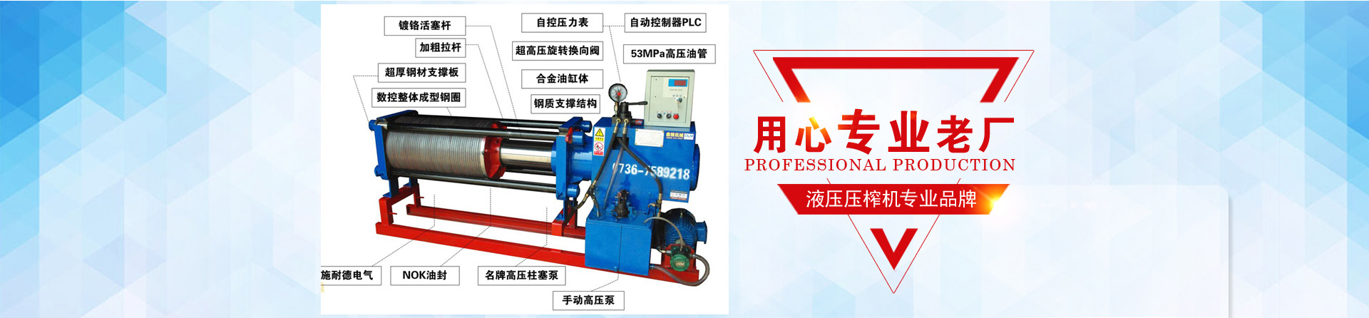 產(chǎn)品主要有:液壓壓榨機(jī)、固液壓榨分離機(jī),以及相配套的立式液壓榨油機(jī)、臥式液壓榨油機(jī)、液壓壓餅機(jī)、名類粉碎機(jī)、剝殼機(jī)、帶灶滾筒炒鍋、榨油輔助設(shè)備、各種類型濾油機(jī)、液壓泵站、壓力機(jī)整機(jī)及其配件等。